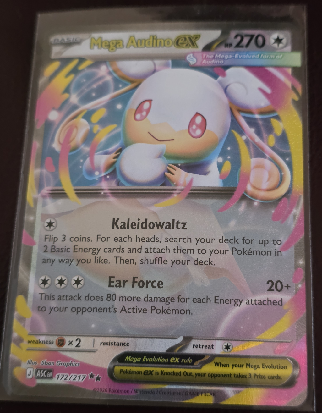 Pokemon Battle Sugoroku Mega Audino Game piece  1,000 Yen Pokemon Shuffle Point Card ANA Mega Audino Pair Card  1,000 Yen Pokemon Shuffle Point Card  1,000 Yen Pokemon Shuffle Point Card  Mega Audino Karuta Card  Mega Campaign: Deck Seperator that came with the Mega Charizard Y Promo Box  Mega Campaign: Card Holder featuring Mega Audino, Mega Altaria, and Mega Diancie Poncho Pikachu  Mega Campaign: TCG Card featuring Mega Audino, Mega Lucario, and Mega Slowpoke Mega Audino EX Battle Deck Box & Booklet Battle Deck Mega Audino EX Card (JPN)  Battle Deck Mega Audino Spirit Link Card (JPN)  Battle Deck Mega Audino EX Battle Deck Coin Mega Audino EX Battle Deck Playmat Fates Collide Mega Audino EX Card (ENG)  Fates Collide Mega Audino Spirit Link Card (ENG)  Fates Collide Mega Audino Spirit Link Reverse Holo Card (ENG) Destini Incrociati Mega Audino EX Card (ITA)  Destini Incrociati Mega Audino Spirit Link Card (ITA)  Destini Incrociati Mega Audino Spirit Link Reverse Holo Card (ITA) Impact des Destins Mega Audino EX Card (FRA)  Impact des Destins Mega Audino Spirit Link Card (FRA)  Impact des Destins Mega Audino Spirit Link Reverse Holo Card (FRA) Schicksalsschmiede Mega Audino EX Card (DEU)  Schicksalsschmiede Mega Audino Spirit Link Card (DEU)  Schicksalsschmiede Mega Audino Spirit Link Reverse Holo Card (DEU) Korean Mega Audino EX Battle Deck Box & Booklet Battle Deck Mega Audino EX Card (KOR)  Battle Deck Mega Audino Spirit Link Card (KOR)  Mega Audino Domino (Factory Error) Destinos Enfrentados Mega Audino EX Card (ESP)  Destinos Enfrentados Mega Audino Spirit Link Card (ESP)  Destinos Enfrentados Mega Audino Spirit Link Reverse Holo Card (ESP) Fusão de Destinos Mega Audino EX Card (BRA)  Fusão de Destinos Mega Audino Spirit Link Card (BRA)  Mega Audino Domino Unassembled Mega Audino Domino Pokemon 2016 World Championship Deck – Shintaro Ito’s Magical Symphony  Gold Mega Audino Ddakji Pokemon Coin Collection Volume 6 Mega Audino Coin MEGA Start Deck 100 Battle Collection Mega Audino EX Card (JPN) MEGA Start Deck 100 Battle Collection Mega Audino EX SR Card (JPN) MEGA Start Deck 100 Battle Collection Deck Box CoroCoro Card Box MEGA Start Deck 100 Battle Collection Playmat MEGA Start Deck 100 Battle Collection 100 Person Battle Tournament Participant Deck Box (Japanese)  MEGA Start Deck 100 Battle Collection Mega Audino EX Card (TC) MEGA Start Deck 100 Battle Collection 100 Person Battle Tournament Participant Coin MEGA Start Deck 100 Battle Collection 100 Person Battle Tournament Winner’s Playmat MEGA Start Deck 100 Battle Collection 100 Person Battle Tournament Participant Deck Box (Traditional Chinese)  Ascended Heroes Mega Audino EX Card (ENG)  Ascended Heroes Mega Audino EX SR Card (ENG)  Ascesa Eroica Mega Audino EX Card (ITA)  Ascesa Eroica Mega Audino EX SR Card (ENG) |
