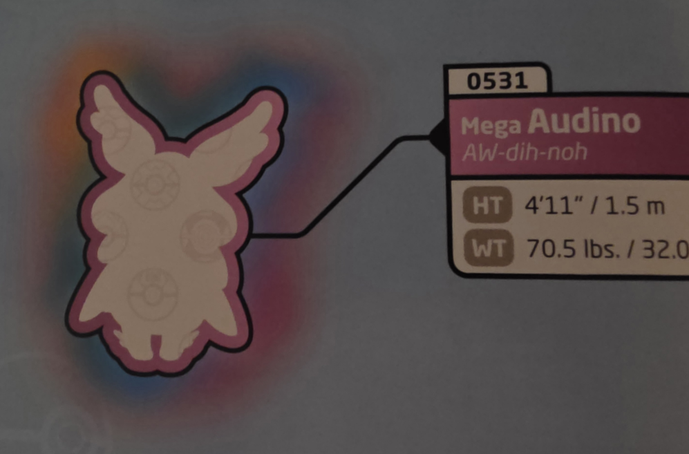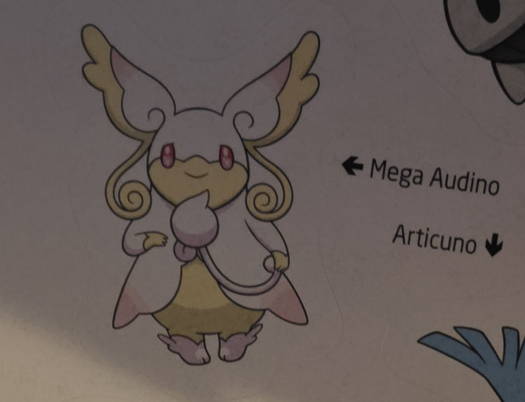 Pokemon Omega Ruby/Alpha Sapphire National Photo Guide & Data File November 2014 CoroCoro’s Sky Adventure Comic The Official Omega Ruby/Alpha Sapphire Story Guide A Stand that was displayed in stores to sell the Pokemon Guide Books  PokeToru Mug B Design Weekly Famitsu 4/2 edition (9th issue of 2015)  Mega Audino Flat  Mega Audino Battle Deck Advert  Pokemon Baby Star Ramen Dried Noodle Snack Packet  Mega Audino Furikake Packet Pokemon Fan Magazine (November 2015 Edition) Pokemon XY&Z 2016 Calendar Puzzle Daiichi Pan Mega Audino Donut Wrapper  Audinite from the Pokemon Mega Stone Plus2 Gachapon Pokemon Mega Stone Plus2 Gachapon Insert Pamphlet Mega Campaign: Charizard Y Promo Box Mega Campaign: Mega Audino Poncho Pikachu Towel  Mega Campaign: Pouch Pokemon Magazine with Activity Book & DVD  Mega Campaign: File Book  Mega Campaign: Blind-packaged Acrylic Charm Packaging  Audino & Mega Audino Pokemon Deluxe Essential Handbook Page Mega Audino, Mega Diancie, and Mega Altaria Poncho Pikachu Tin  Mega Campaign Tin Package A Quick Look Guide for ORAS Pokemon Band Fes: Card Pouch/Mini-Wallet Pokemon Band Fes: Mini Bath Towel Pokemon Band Fes: iPhone Case Pokemon Band Fes: Thermos Pokemon Mega Stone Plus2 Gachapon Display Mount Pokemon Center Hoenn Premium Badge Set The ORAS Pokedex Guide Pokemon Band Fes: The Blind Bag the shirts were sold in Mega Audino Flat from the Pokémon Visual Companion, Second Edition. Mega Audino Flat from the Pokémon Epic Sticker Collection (2nd Edition) Mega Audino’s Page in the Pokemon Sun & Moon Mega Omnibus Mega Audino’s page in the Pokemon Asia Let’s Compare Omnibus Pokemon XY&Z 2016 Calendar Puzzle Mega Audino EX Battle Deck Store Display Box Mega Audino in ??? Mega Audino in ??? Korean Stationery Seal Booklet Ash’s Quest: The Essential Guidebook Pokemon Legendary Sticker Collection: Regional Pass Pokemon Encyclopedia 1021+ XY&Z Volume 2 Rental DVD Pokemon ORAS Mega Evolution Encylopedia Mega Evolution Sticker Book Super Duper Extra Deluxe Essential Handbook 2025 Pokémon Collection Lottery Let’s Go for a Walk! Mini Towel 1,000 Piece Jigsaw Puzzle by ensky Pokemon Legends Z-A Special Preorder Box 2025 Pokémon Collection ~Let’s Go for a Walk!~ Kuji Store Display  MEGA Start Deck 100 Battle Collection Advertisement Pamphlet Pokemon Legends Z-A Starter Guide Pokémon Epic Sticker Collection (3rd Edition) |