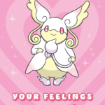 - Mega Audino’s Feelers – The Ear feelers curl inward. The feelers on its chest below the big puff can be pulled out the same way the ear feelers for both Audino and Mega Audino can be pulled out. When not being held, they go back to normal. One isn’t longer than the other nor does it just hang there if it’s not being held. Similarly, either one can be pulled– not just its right one. Mega Audino generally seems to pull at its chest feelers like a stethoscope over its ear feelers like Audino would.