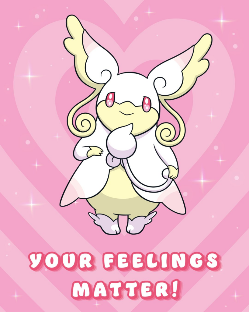 - The underside of Mega Audino’s “cloak”/”skirt” is pink– it’s actually the same color as its footprint color.