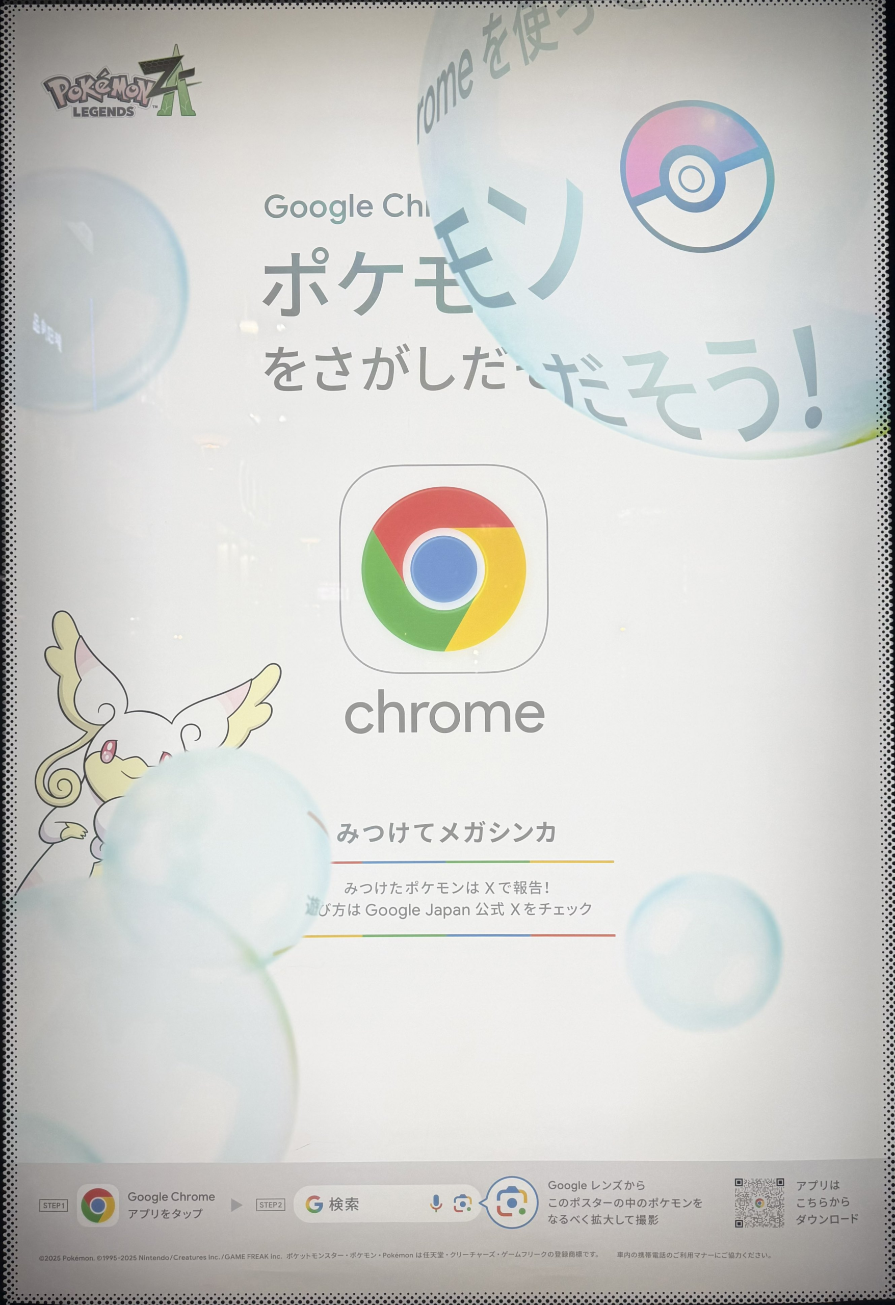 A special campaign with Google Chrome that had Pokemon hiding in images (or just standees/big displays of them) in places around Japan. Mega Audino specifically was on an advertisement at a bus stop in Saitama City– specifically by Urawa Station’s East Exit (浦和駅東口). I don’t know what happened to it after the campaign ended.